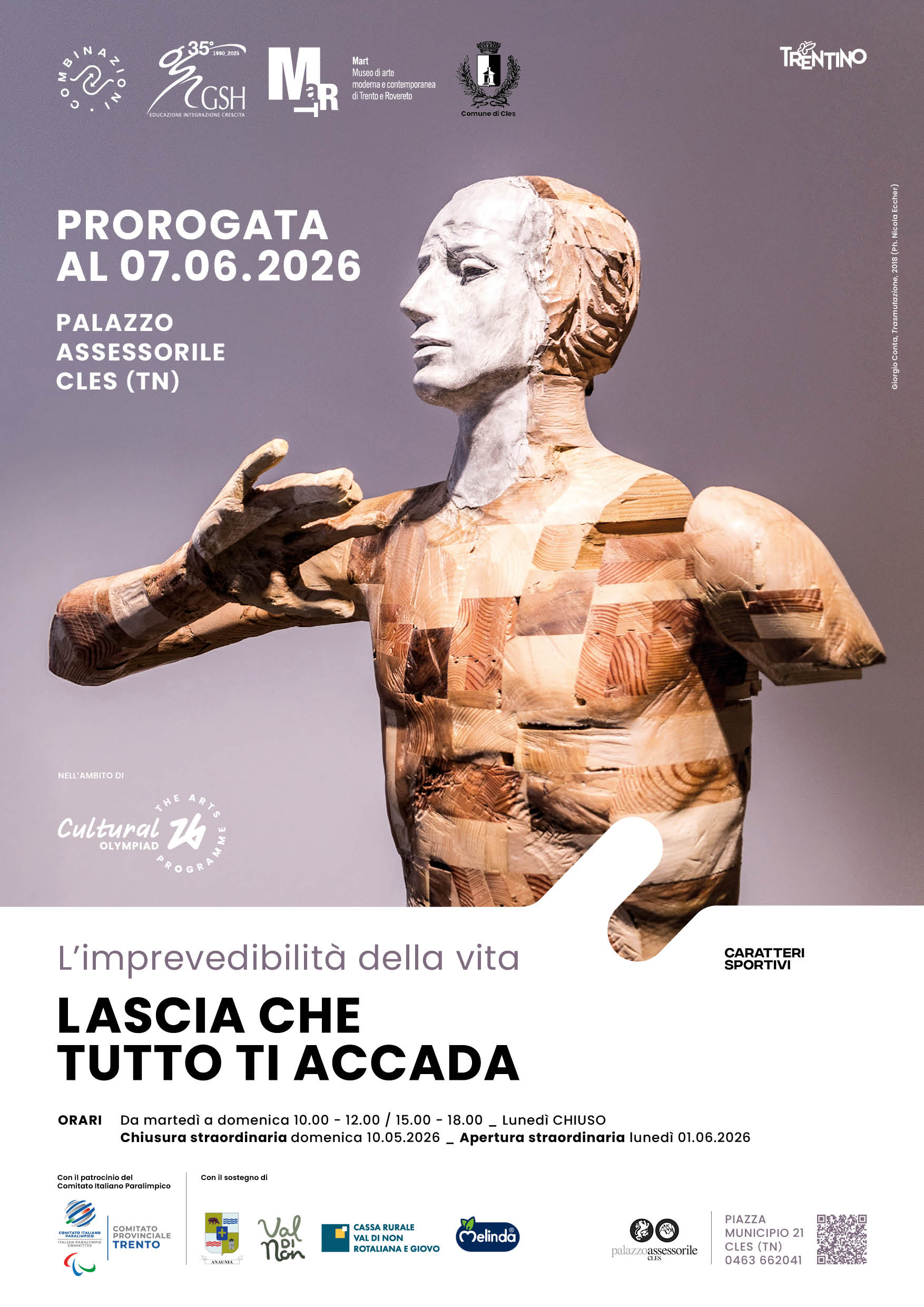 Lascia che tutto ti accada è un progetto della Cooperativa sociale GSH e del Mart, in collaborazione con il Comune di Cles. Nell’ambito di Olimpiade Culturale di Milano Cortina 2026 e di Combinazioni_Caratteri Sportivi, Provincia autonoma di Trento.