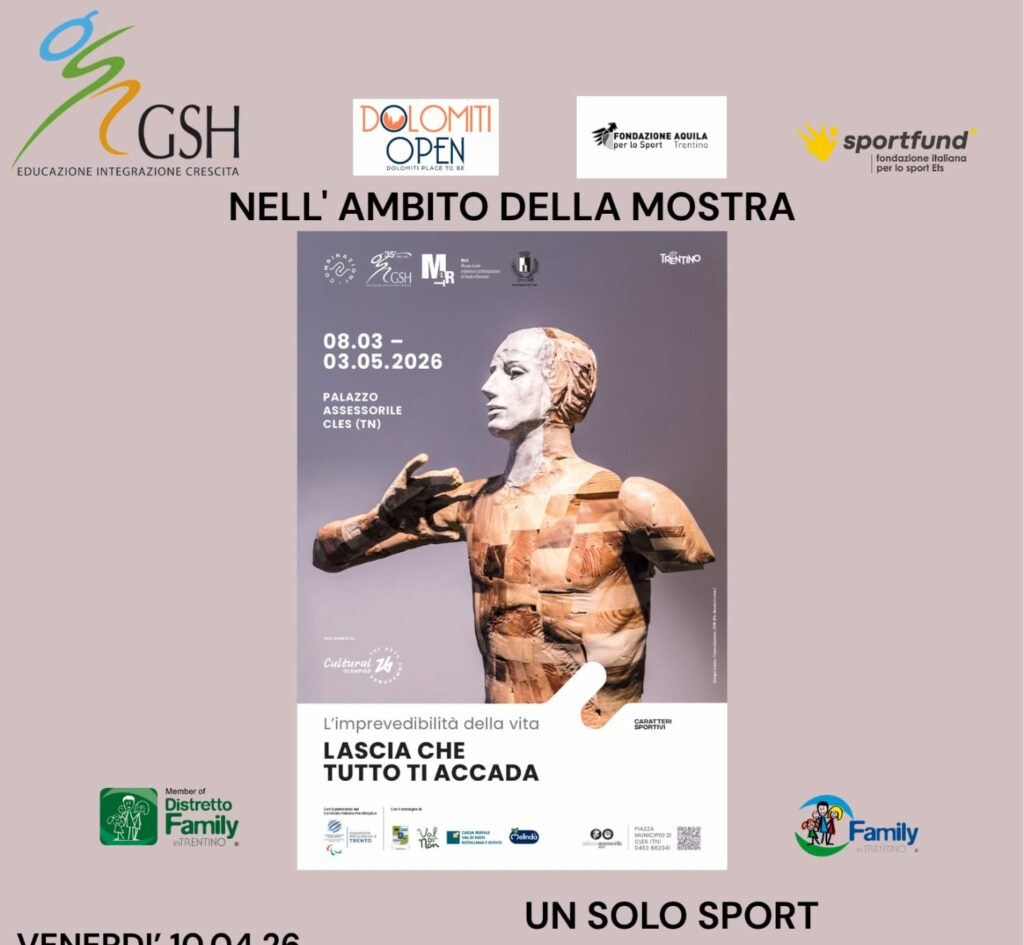 Venerdì 10 aprile 2026 vi aspettiamo per l’evento “Un solo sport”, ore 20.30 Palazzo Assessorile Cles. Ingresso libero!